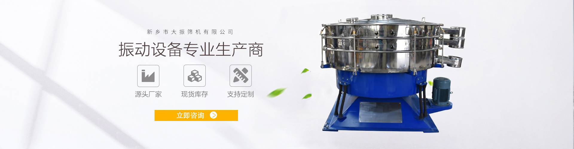 新鄉市大振篩機有限公司原新鄉市振動篩機廠有限公司,我公司是生產振動篩的廠家,1991年成立之初,在史董的帶領下靠僅有的800元創業資金,經過20年的發展,成為了如今總資產近億元的企業。  我廠一直堅持嚴格把控質量,合理的供貨價格,經過積累贏得了廣大用戶的肯定和贊譽,多年來,我公司工程技術人員在引進國外振動篩技術的基礎上,聽取用戶的反饋信息,不斷的對產品設計進行改進,多次對技...... 【查看更多】